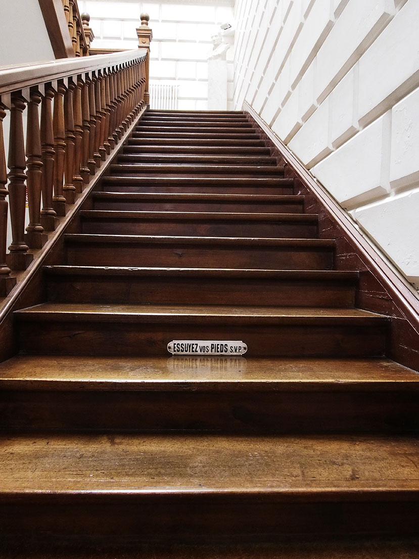 Je l’ai visitée pour un article qui lui est dédié dans le magazine Dire Lot. Lorsque j’ai franchi la porte, et que j’ai découvert cet escalier baigné de lumière, j’ai su de suite que je n’allais pas être déçue. En effet, la salle immense m’a transportée dans un décor de film, dans le temps, dans certains romans classiques.