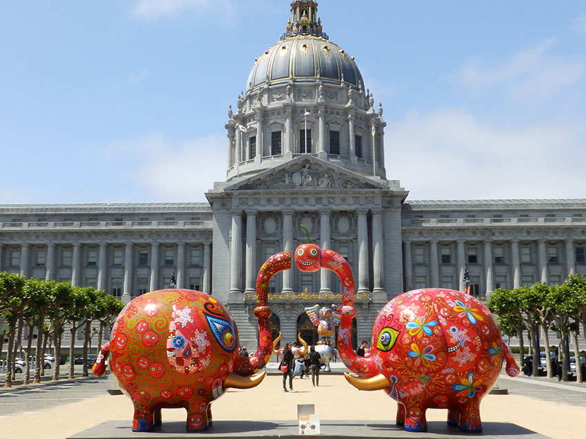 Cette semaine, petit florilège d’artistes de rue ou d’art dans la rue, à San Francisco sur différentes périodes : du clown skater à l’artiste taïwanais Hung Yi dont les animaux fantastiques étaient exposés face au Civic Center en 2015, en passant par les musiciens ou les graffeurs.