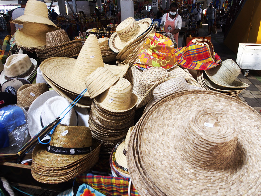 Sur le marché de Fort-de-France, on trouve des bakouas, ces chapeaux conçus d’après l’arbre du même nom. Cet arbre est l’un des sujets du projet Arbonirisme en Martinique.