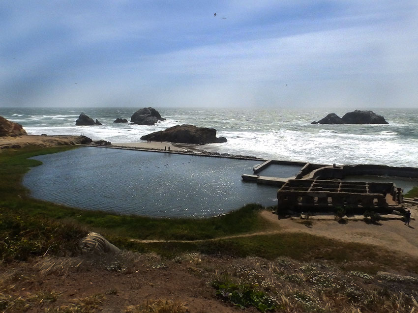 San Francisco is a city where several settings mix: urban, nature, wine, but also and above all seaside. Here, a view of Alcatraz, details of the ultra-touristy Fisherman’s Wharf district, a view of the Pacific from a seaside restaurant, and the ruins of an old swimming pool from the beginning of the 20th century that was destroyed in a fire.